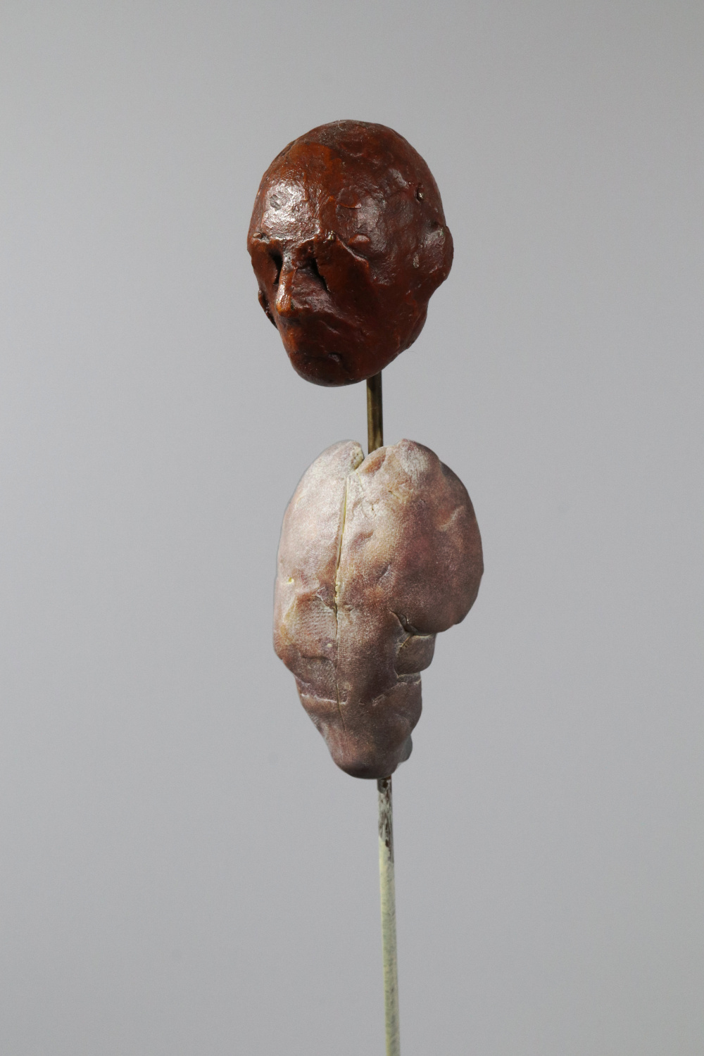 unique piece, painted bronze, clay, wood, paper 41 x 6 x 6 cm