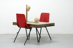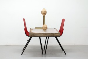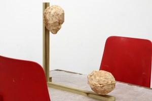 Gaze 2024 plaster, sand, wood, plastic, chairs 100 x 100 x 100cm