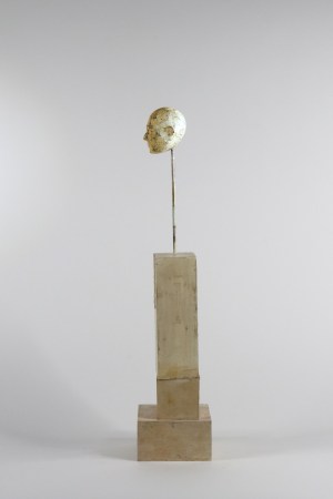 unique piece, painted bronze, wood, calico, paper 38 x 8 x 8 cm