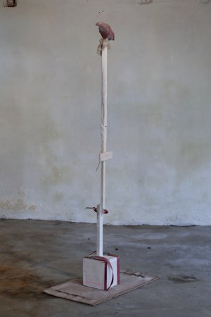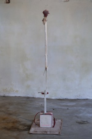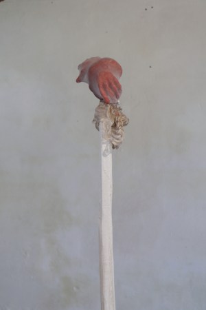 unique piece, concrete, steel, stocking, calico, polymer clay, wood, paint 175 x 95 x 50 cm